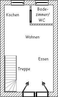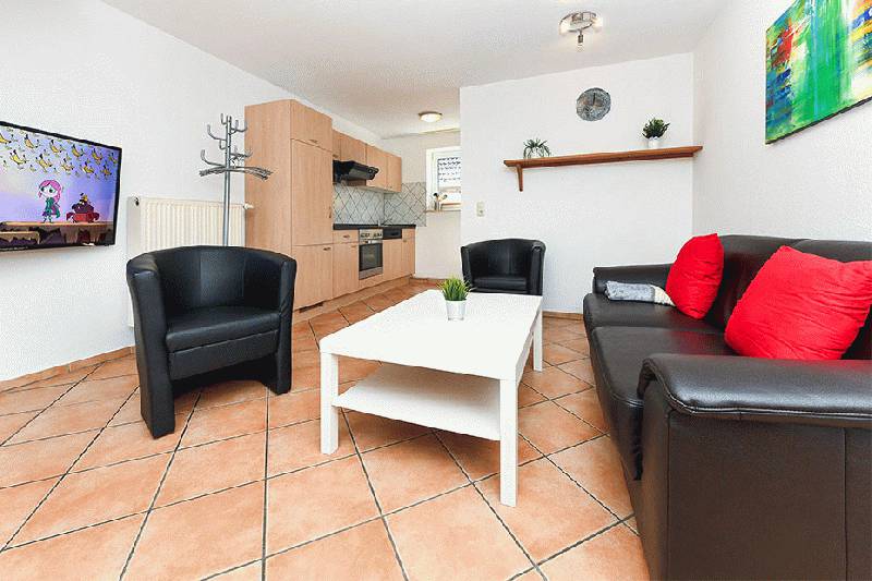 Die Wohnfläche der Ferienwohnung beträgt etwa 60 Quadratmeter. Der Wohnbereich ist mit einer Küchenzeile ausgestattet Es sind 2 Schlafzimmer vorhanden (Eltern & Kinderzimmer). Zur Ferienwohnung gehören natürlich ein Badezimmer mit Dusche und WC.