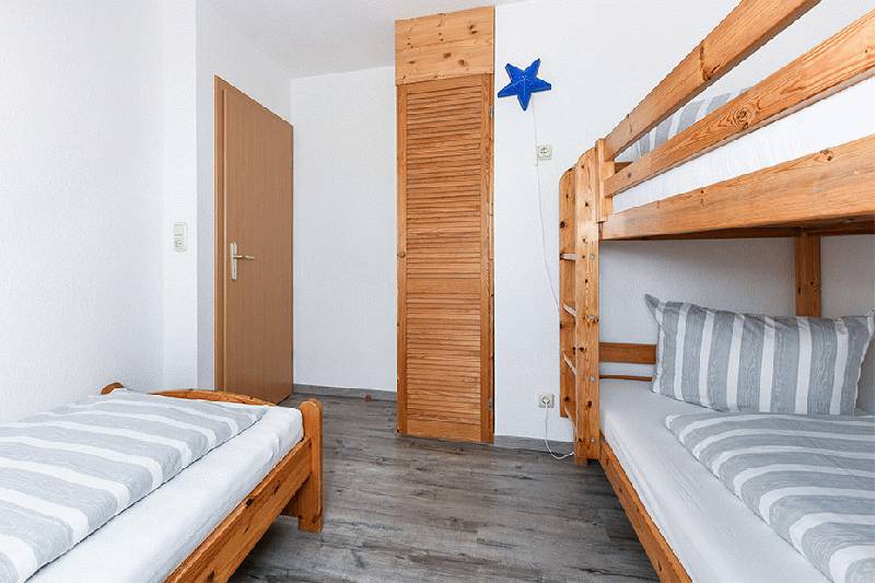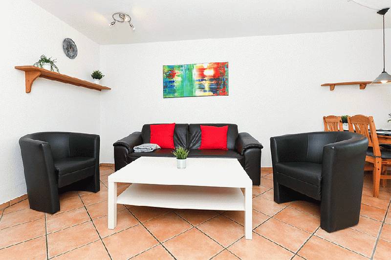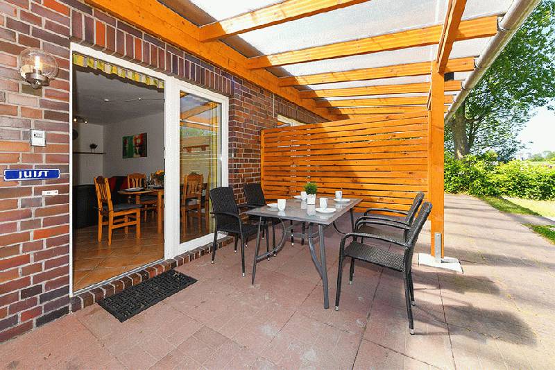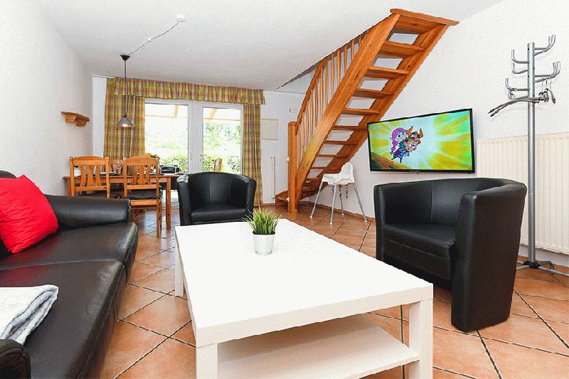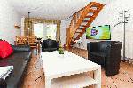 Die Wohnung befindet sich im Erdgeschoss und bietet eine gemütliche Terrasse für die entspannten Stunden. Die Schlafzimmer sind im 1. Obergeschoss. Diese Ferienwohnung ist idealerweise für 2 bis 5 Personen und ein Kleinkind geeignet.