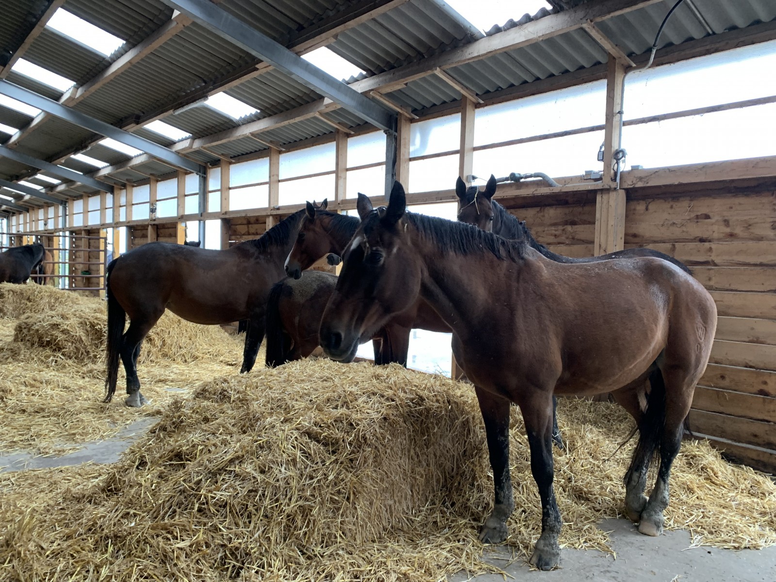 Im Sommer stehen die Pferde 24h in nach Stuten und Wallachen getrennten Weiden und genießen die Ruhe. Im Winter haben wir die Auswahl zwischen der Unterbringung im Offenstall, der auch nach Stuten und Wallachen aufgeteilt ist oder aber die Unterbringung im Stallbereich zum Beispiel in einer Fensterbox oder Innenbox. Wir füttern ausschließlich qualitativ hochwertige Heulage, die wir als Familienbetrieb auch selber von Hofeigenen Grasflächen herstellen.